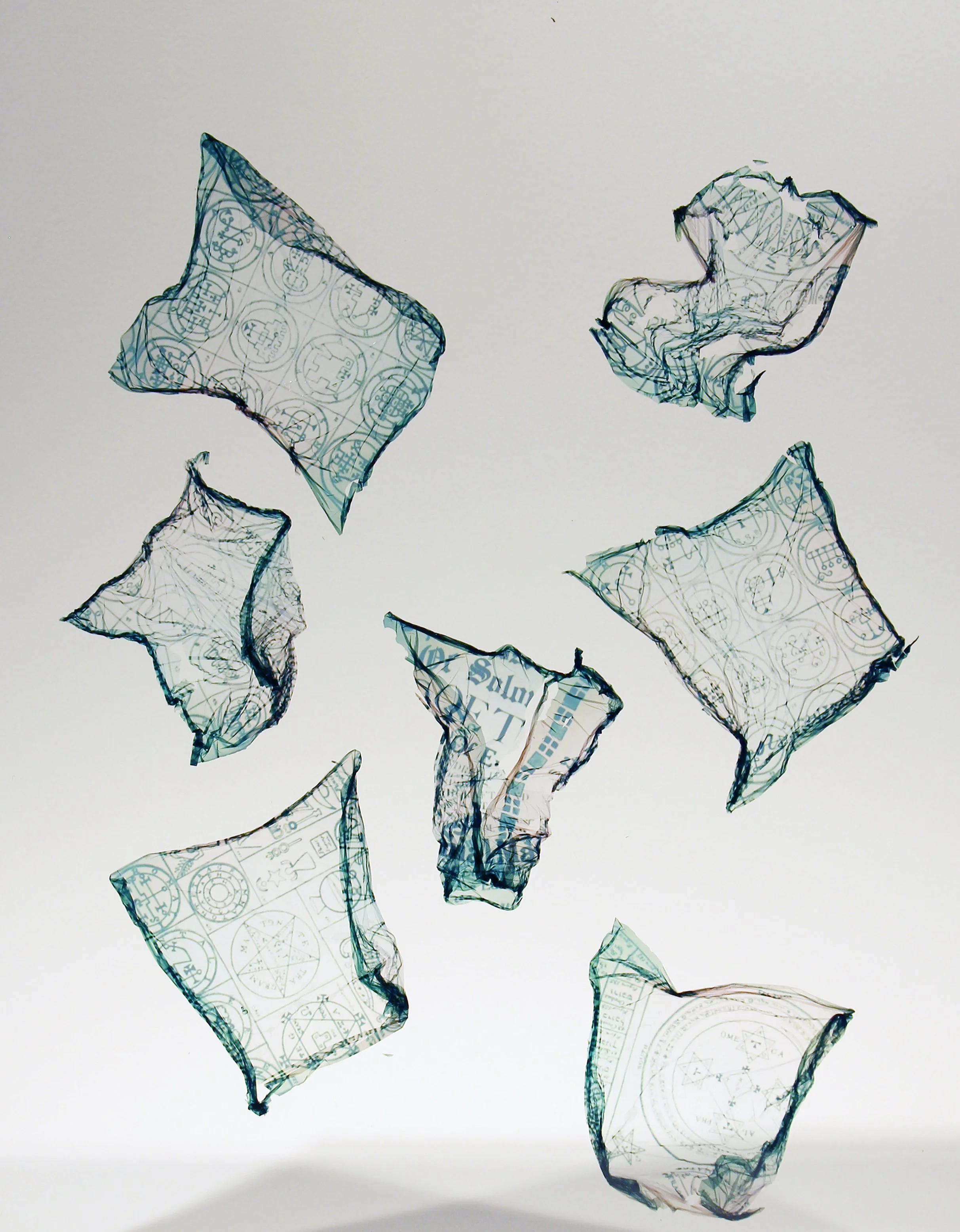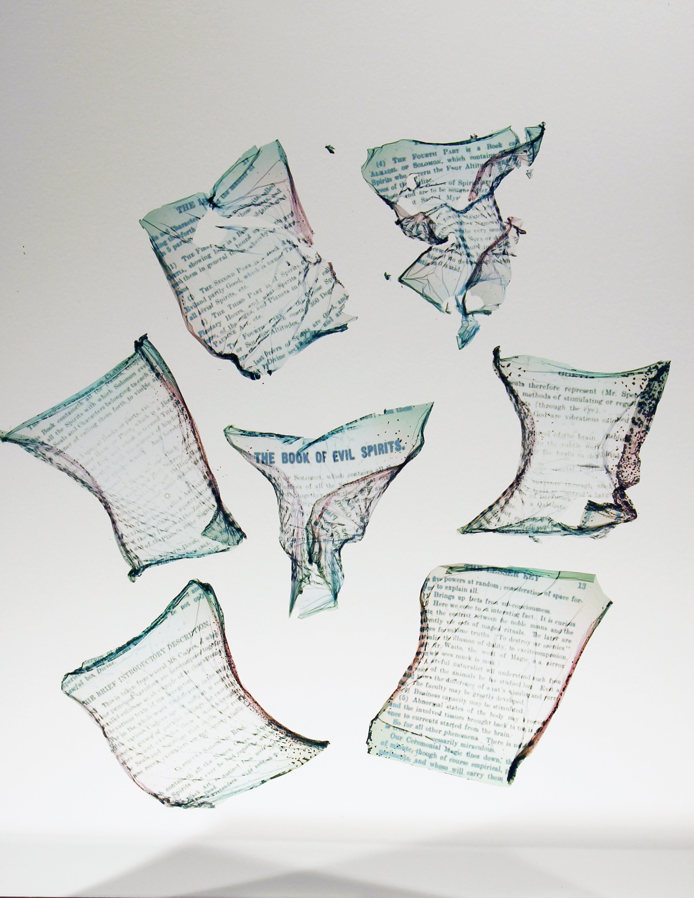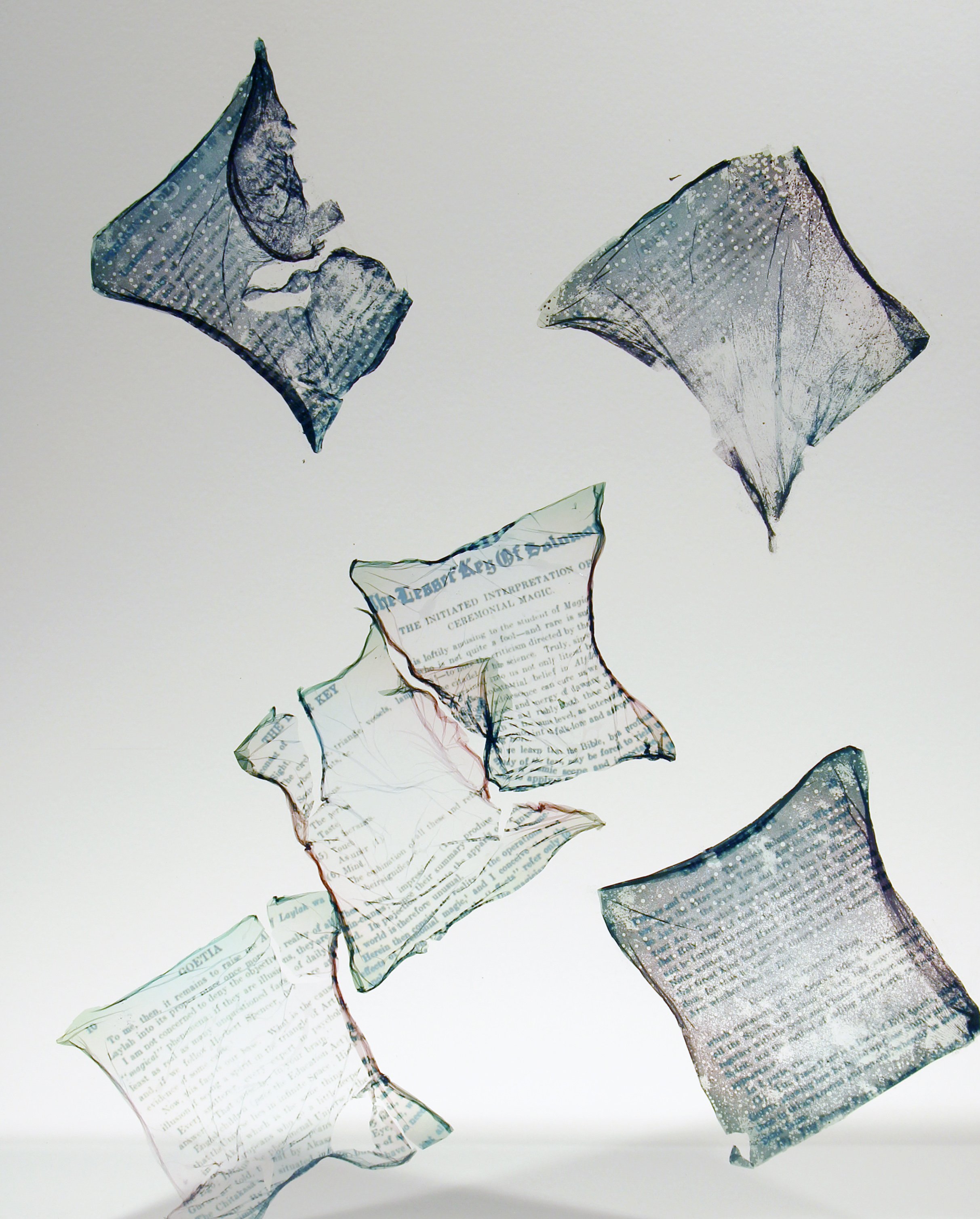 The connection to joy can sometimes be a dark and twisted one, such as schadenfreude, a form of pleasure born from the suffering of others. This sentiment was captured by philosophical moralist, Arthur Schopenhauer, who once said, "To feel envy is human, to savor schadenfreude is devilish."  Drawing from demonic illustrations in the 1792 grimoire, Compendium Rarissimum, and the 1916 first mass produced copy of the grimoire, The Lesser Key of Solomon, the work questions how joy can emerge from harm and whether such emotions are inherently immoral or an intricate part of our psychological makeup. Fragments of Infernal Schadenfreude utilizes Selenite, a crystal associated with purity, and mounts these emulsion-transferred fragments onto Black Obsidian scrying mirrors. This material choice creates a layered dialogue. While the Selenite suggests a cleansing of negative energy, the Obsidian acts as a conduit for truth, revealing hidden fears, flaws, and suppressed negativity. A perverse celebration of harm, schadenfreude often stems from superiority, revenge, or personal justification. In a modern landscape where division fuels these primal impulses, these photo-sculptures explore how intrusive feelings are revealed and processed. Schadenfreude invites viewers to engage with the discomfort of these emotions through the infernal and reconsider how we judge them, both in ourselves and in the collective.